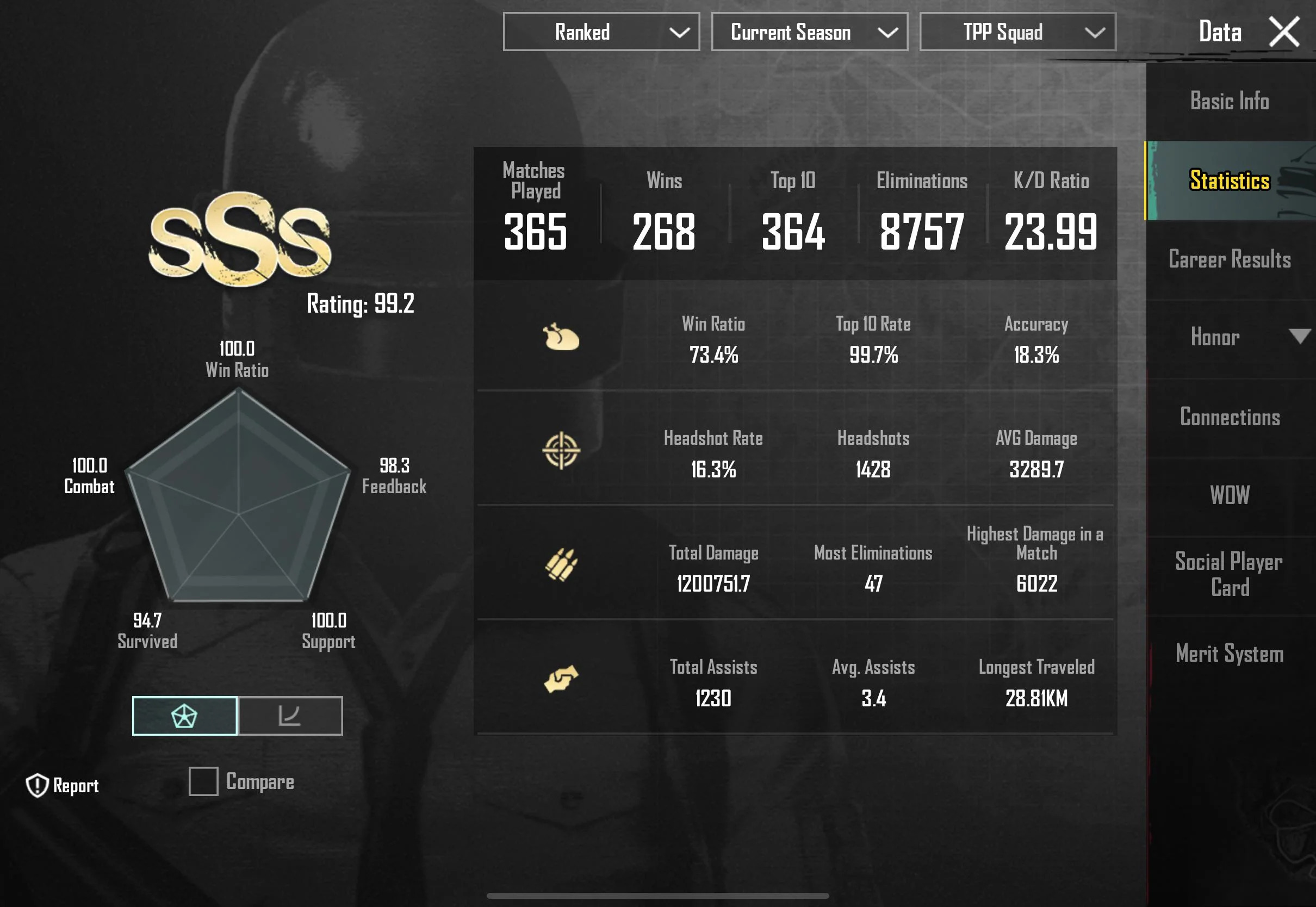Leaderboard rankings and competitive player stats (e.g., PUBG Mobile)