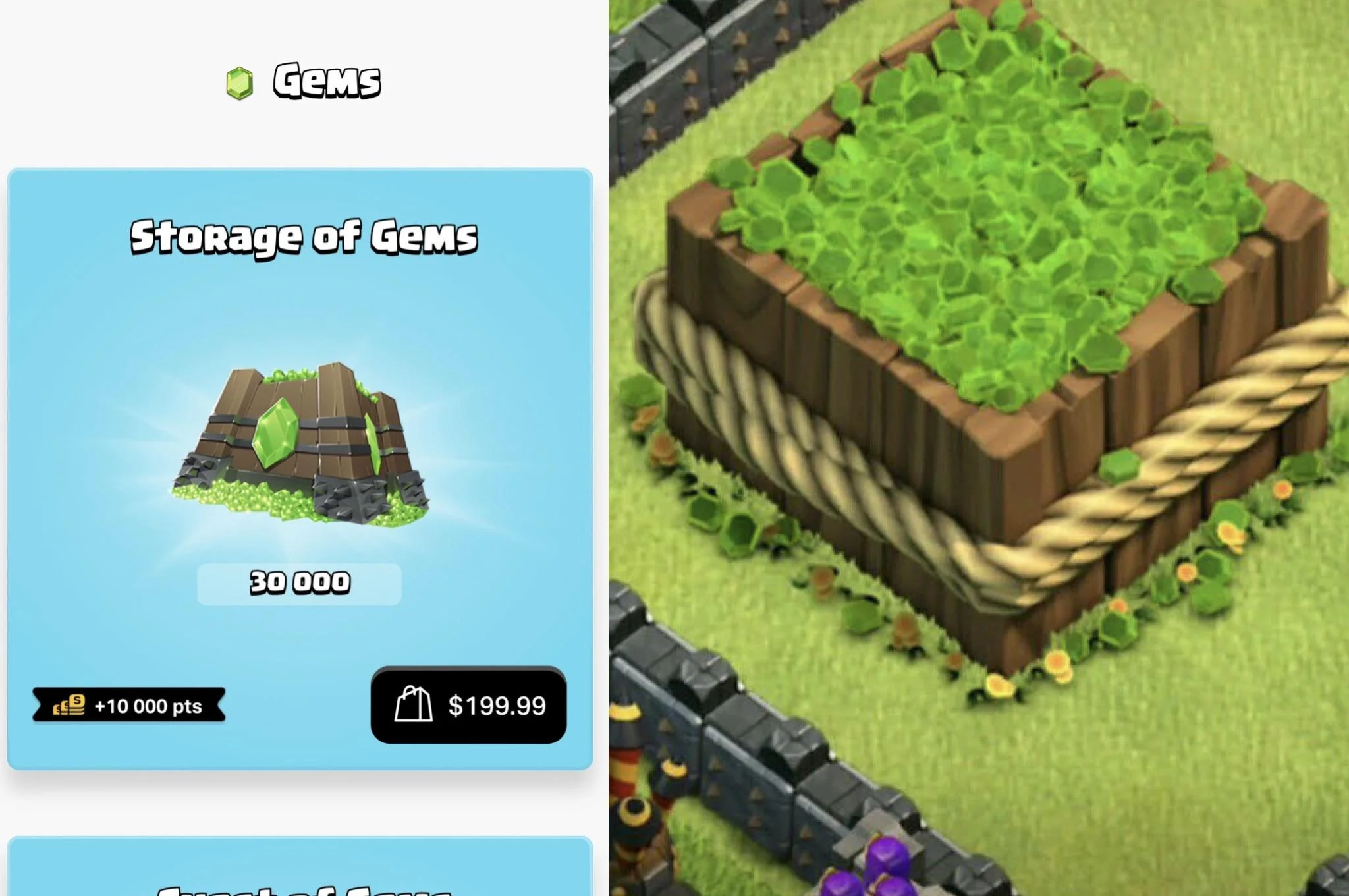Streamlined Shop UI with clearly defined, easy-to-understand bundles (e.g., Clash of Clans)