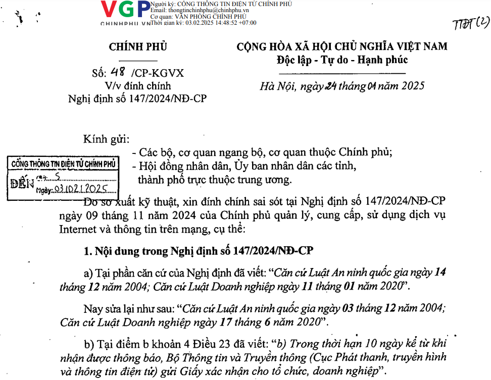 Decree No. 147/2024/ND-CP of the Government: Management, Provision, and Use of Internet Services and Online Information