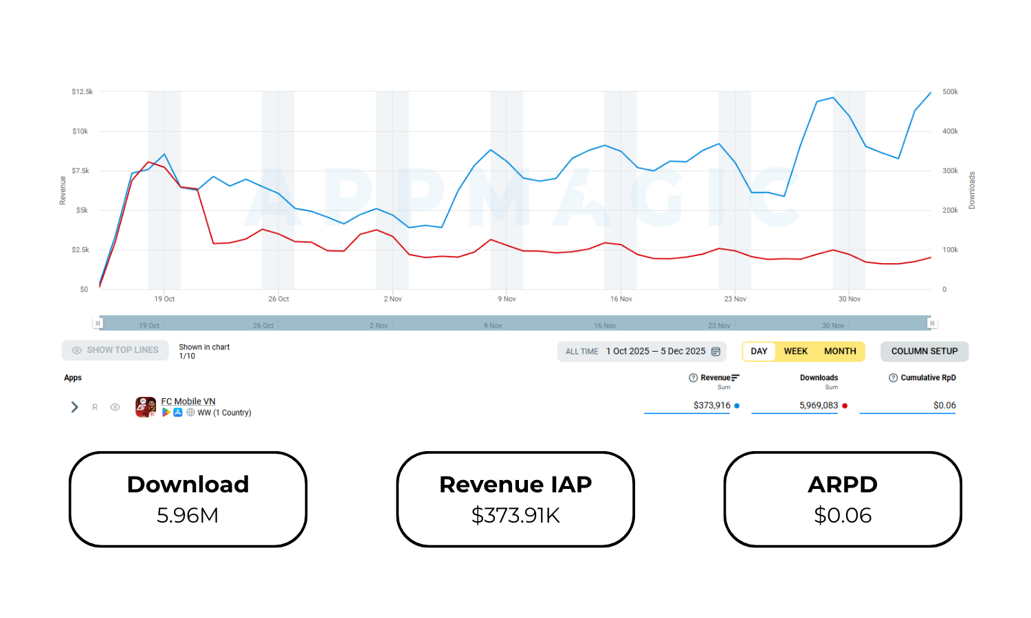 Việt Nam là một trong những thị trường cuồng nhiệt với bóng đá nhất Đông Nam Á. Các giải đấu quốc tế lớn luôn thúc đẩy lượng tương tác trực tuyến khổng lồ và cộng đồng fan bóng đá trải dài qua nhiều nhóm tuổi. Sự cộng hưởng văn hóa này mang lại cho FC Mobile một lợi thế tự nhiên so với các dòng game đòi hỏi người chơi phải làm quen với một hành vi hoàn toàn mới.