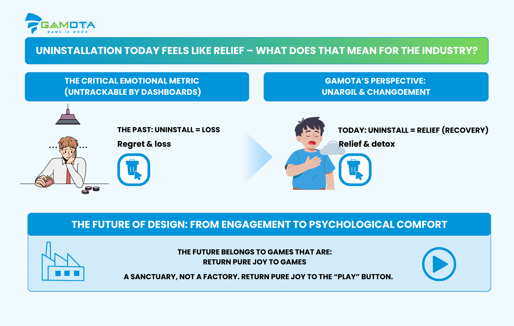• Tương lai của thiết kế game: Ngành công nghiệp cần một sự thay đổi mô hình (paradigm shift). Chúng ta phải chuyển từ việc nhắm tới chỉ số tương tác (engagement) bằng mọi giá sang việc cung cấp Sự thoải mái về mặt tâm lý (Psychological Comfort).